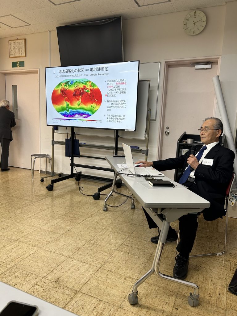 令和7年11月度 一金会 は、11月14日、約30名の参加で、下苙代表世話人の冒頭の挨拶から始まり、「温暖化対策を考える」~日本のエネルギー事情の課題~と題して、NPO法人蔵前バイオエネルギー副理事長兼事務局長の進藤昭夫氏を講師にお迎えし、講演を頂きました。進藤氏と下苙代表世話人とは市ヶ谷の県東京学生寮時代から旧知の仲とのことでした。