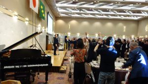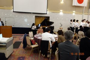 東京ひなた混声合唱団が「宮崎県民歌」、「春に」、「大地讃頌」などを大石瑠璃さんのピアノ伴奏で熱唱
